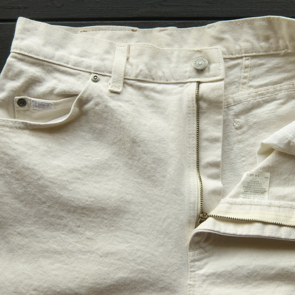 生成りならではの色合いが魅力の一本。シルエットはテーパードの効いたゆったりめのスリム。Tシャツをインしてハイウエストで履いても良し、ガーリーなカットソーにあわせるのもおすすめ。