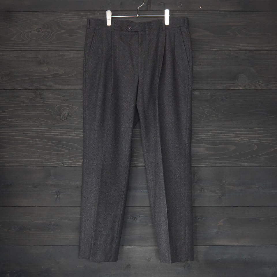 シャドーチェックの渋い色合いがたまらない一本。フロントZIPはTALON社製を採用しており、2タックでシルエットは太めのストレートシルエット。