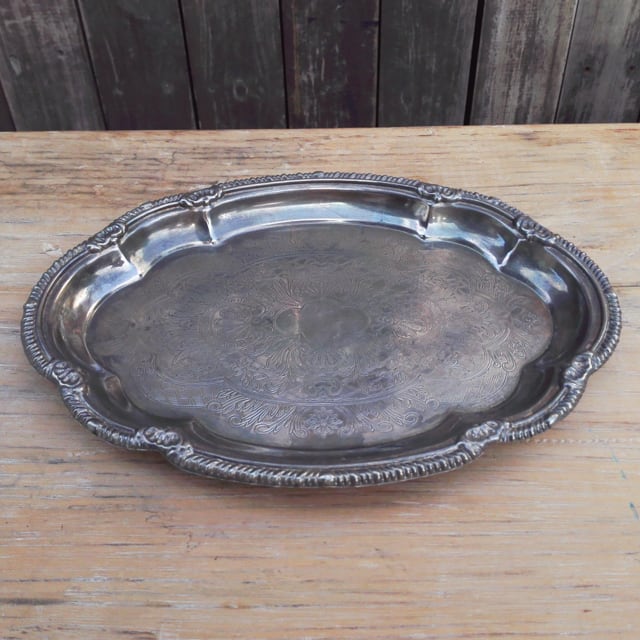 アメリカのアンティークショップで買い付けたシルバーのマネートレイ。表面のには、花や草をモチーフとした素敵な刻印。裏面には、SILVER PLATEDの刻印が入るシルバー製。キャッシュトレイにぴったりのサイズで、そのままお使いいただいてもいいし、釣り銭の音が気になるようでしたら革のハギレを敷いたりすることで雰囲気よくお使いいただけます。鍵やアクセサリー置き場としても雰囲気抜群です。